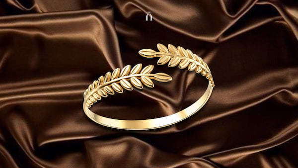 Brățară Leaf din oțel inoxidabil 316L placat cu aur 18K — simbol al naturii și echilibrului, perfect pentru nuanțe bogate de ciocolatiu.
