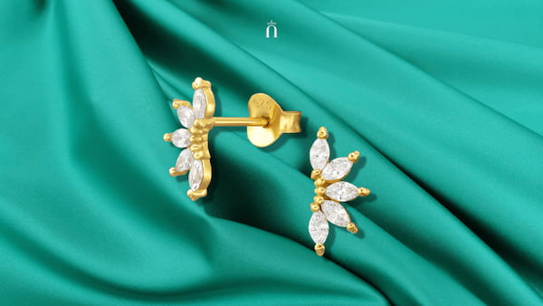 Cercei Butterfly din oțel inoxidabil 316L placat cu aur 18K — design aerat, expresiv, care însoțește galbenul cu aceeași energie radiantă.