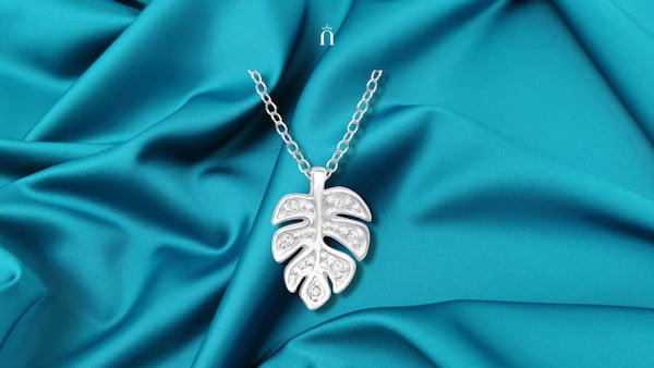 Colier Monstera din Argint 925 — note naturale care complimentează perfect albastrul aqua.