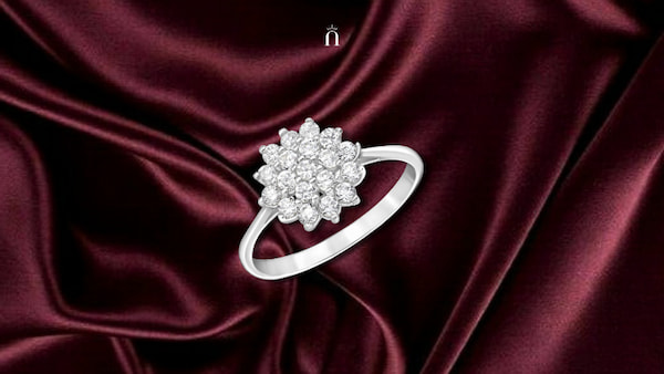 Inel Blossom din Argint 925 cu 19 cristale zirconia — o bijuterie luminoasă, florală, ce echilibrează perfect gravitatea nuanței burgundy.