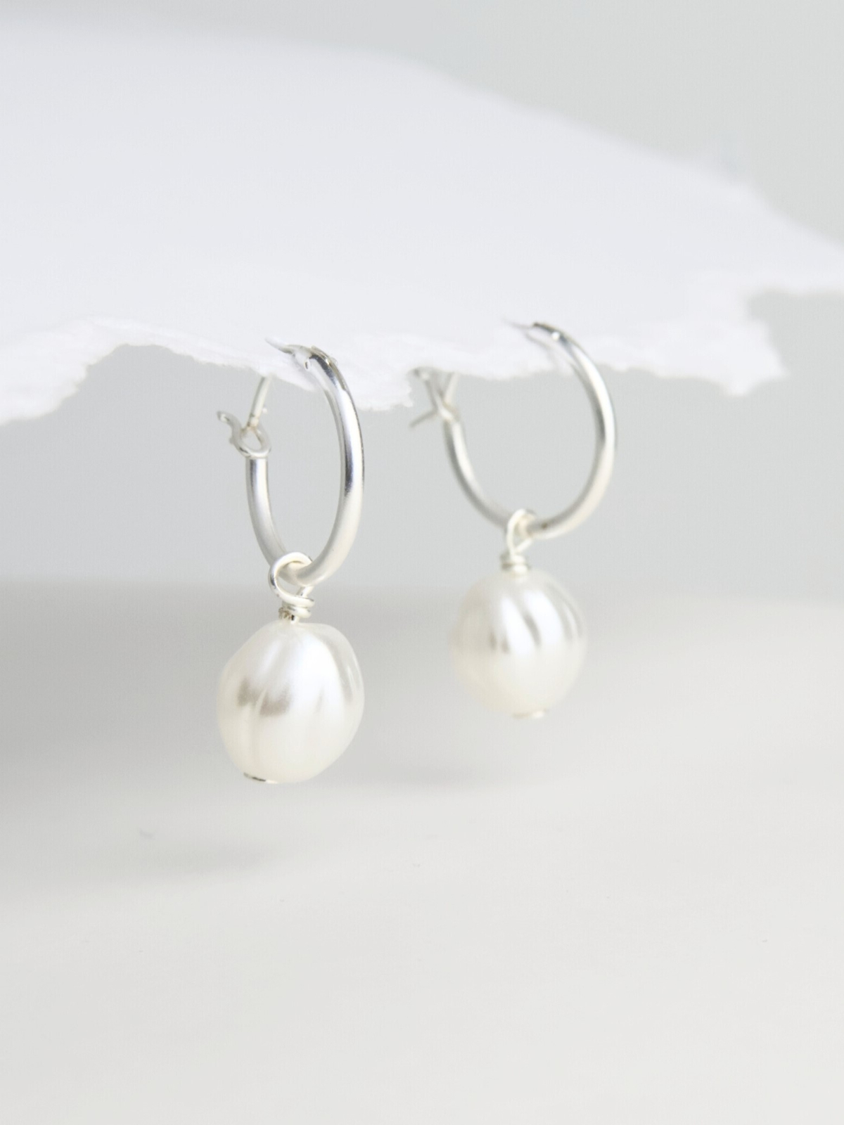Cercei Pearl din Argint 925 — cercei tip hoop cu perlă decorativă, feminini și extrem de lejeri