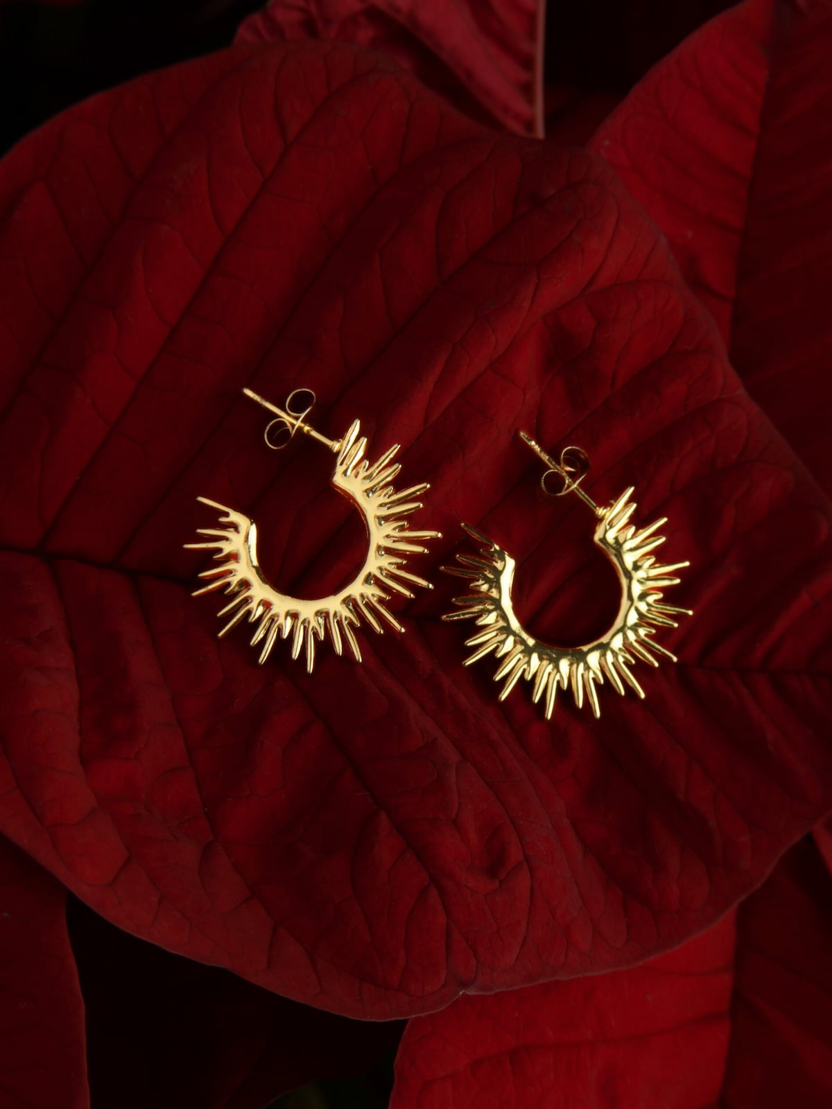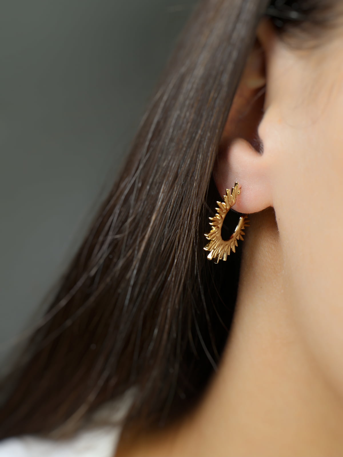 Cu un design inspirat din puterea simbolică a soarelui, acești cercei adaugă un accent solar și pozitiv oricărei ținute. Forma alungită, elegantă, și detaliile fine oferă un efect subtil, dar strălucitor, perfect pentru un stil modern cu influențe naturale.
