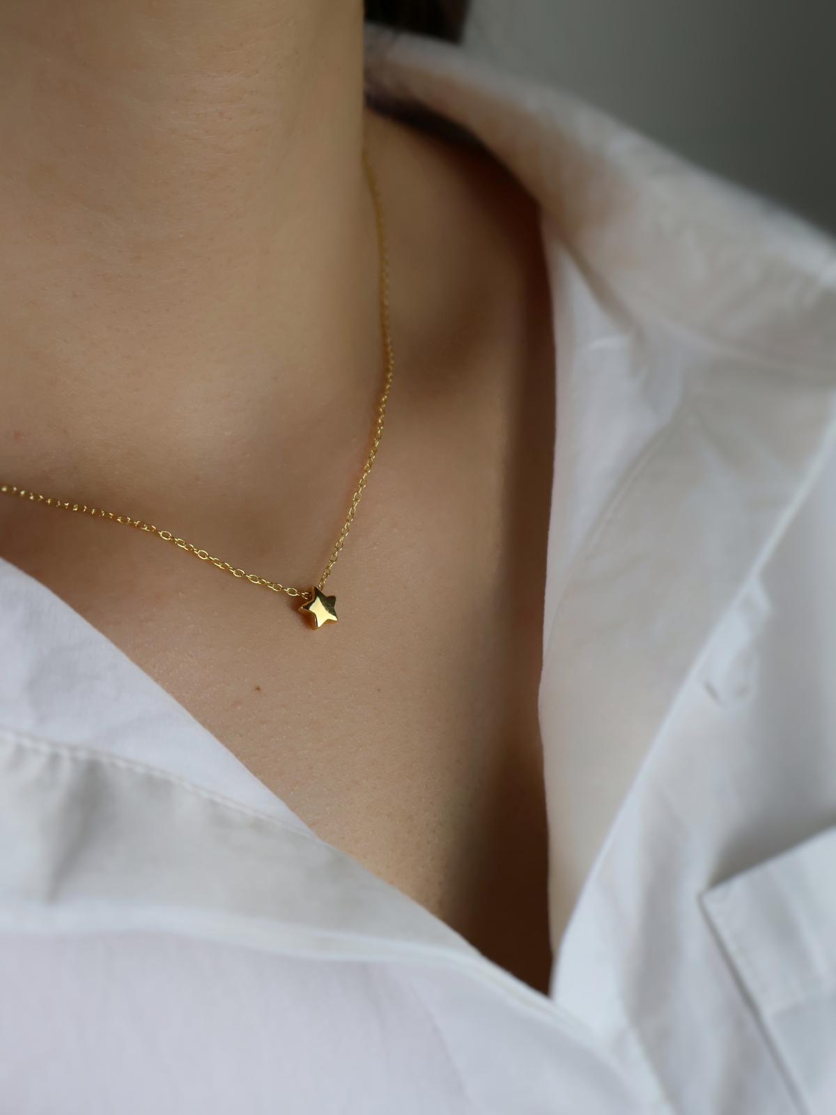 Colier Star - pandantiv stea din Argint 925 placat cu aur, cu lanț de 45 cm – un accesoriu fin, versatil și strălucitor.