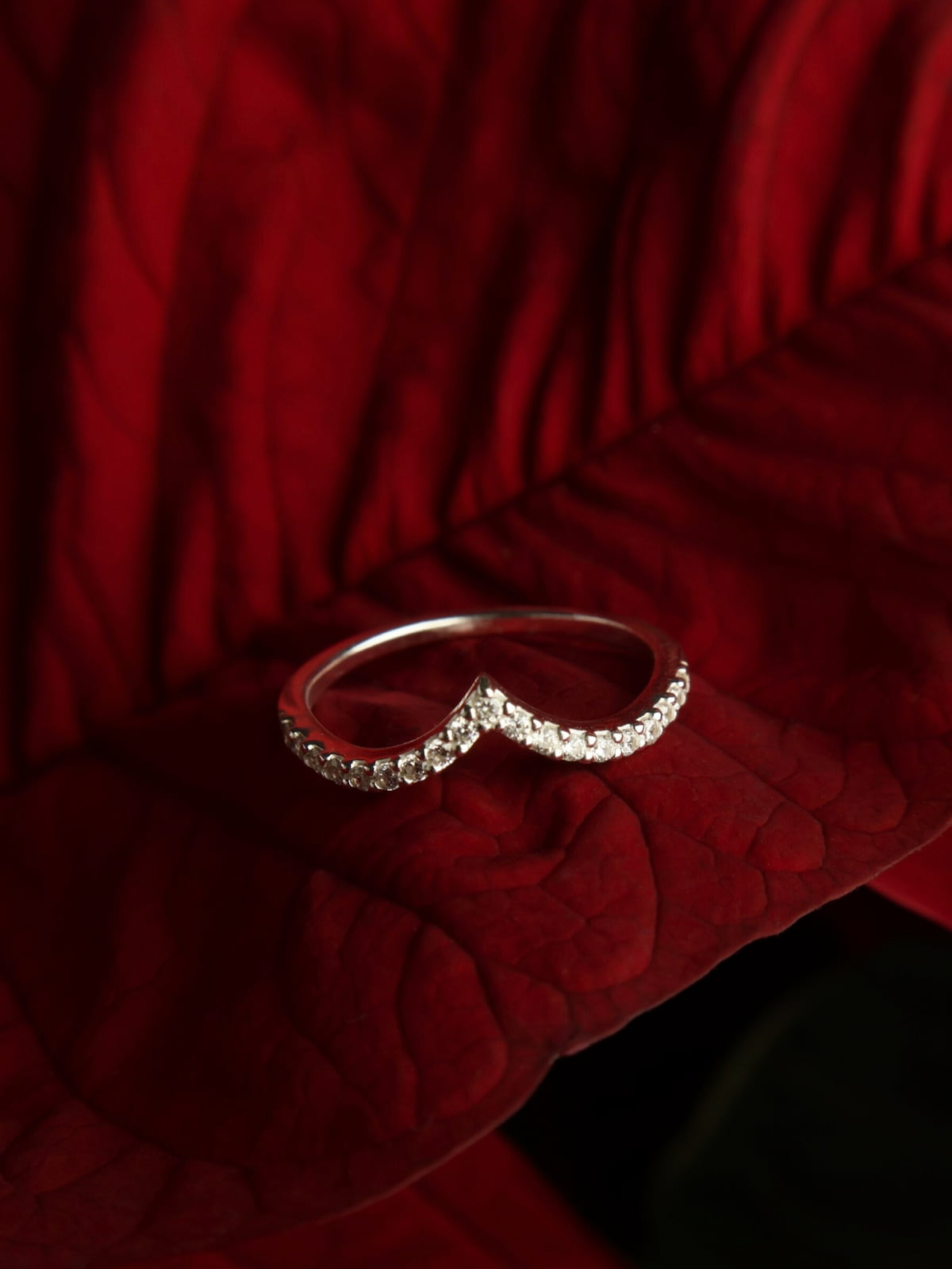 Un model modern și delicat, perfect pentru a subția vizual degetul datorită conturului său în formă de V. Realizat din Argint 925 și protejat cu finisaj E-coat, acest inel oferă o strălucire uniformă datorită celor 19 cristale cubic zirconia montate cu precizie. Ideal atât pentru purtare individuală, cât și pentru combinații rafinate cu alte inele subțiri.
